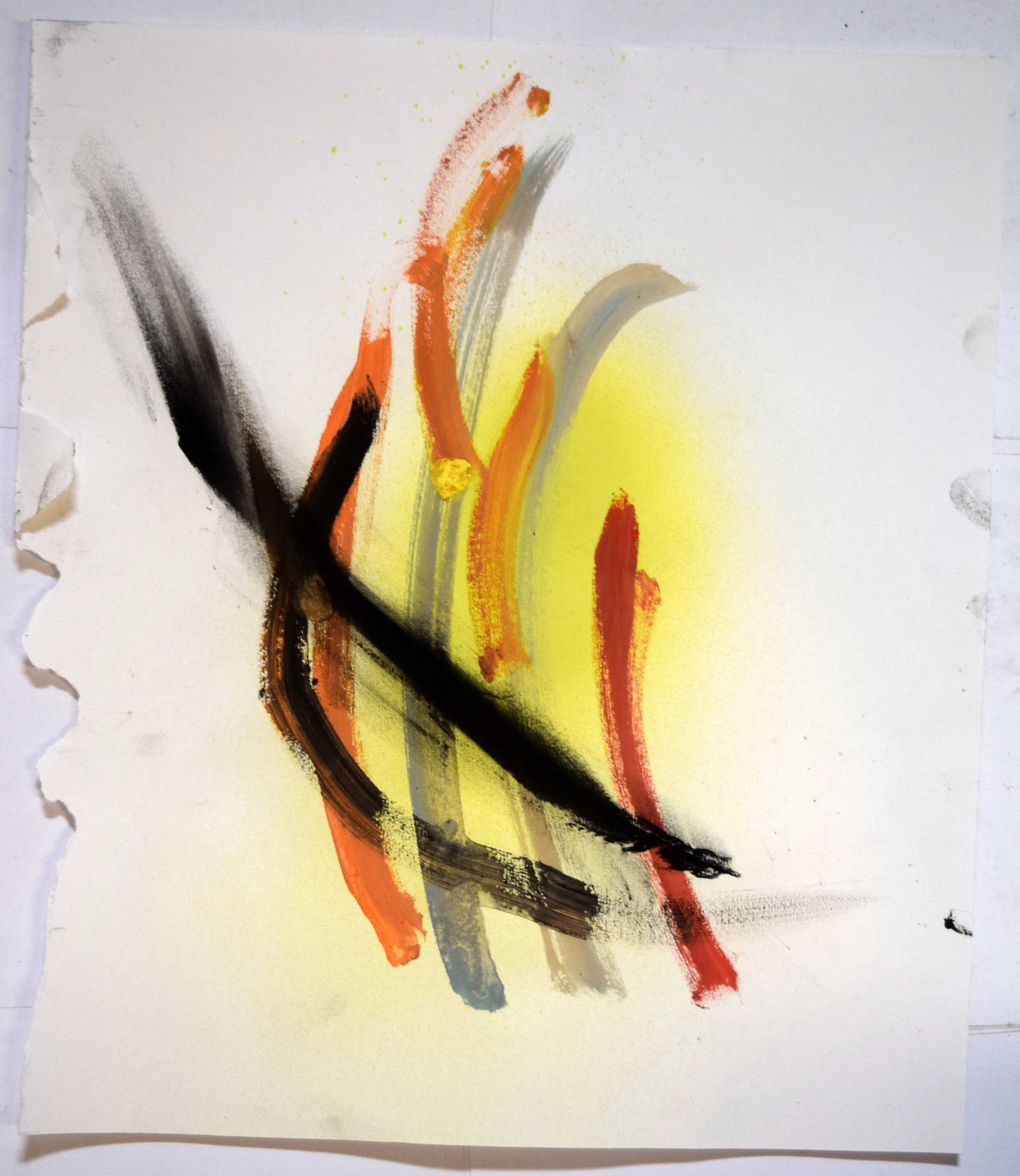 Sun Ward, 2019. Spray paint and watercolor on paper, 18 X 24 inches
