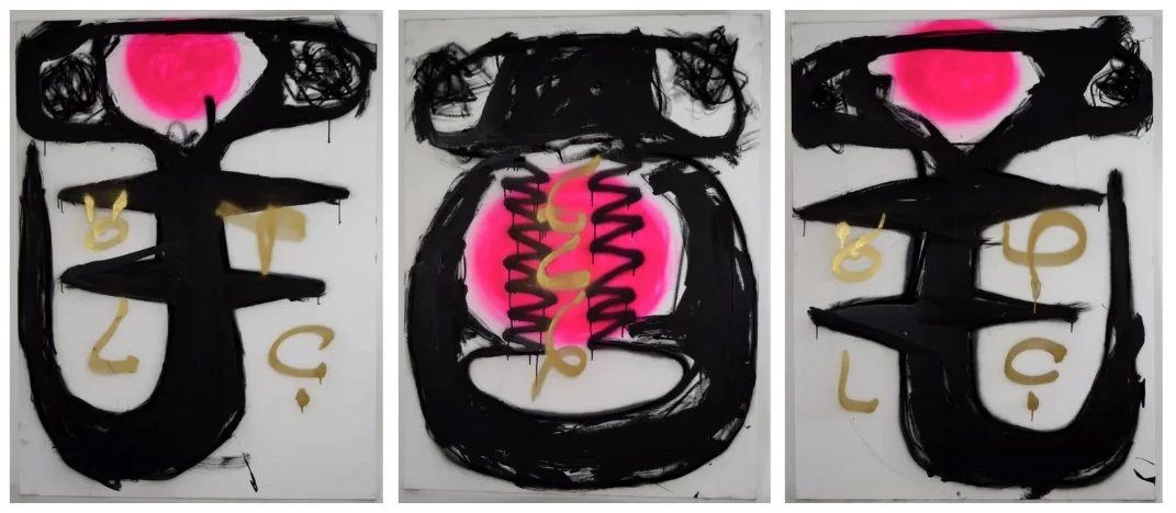 Triptych (Illegible of Love), 2017. Oil and pencil on canvas