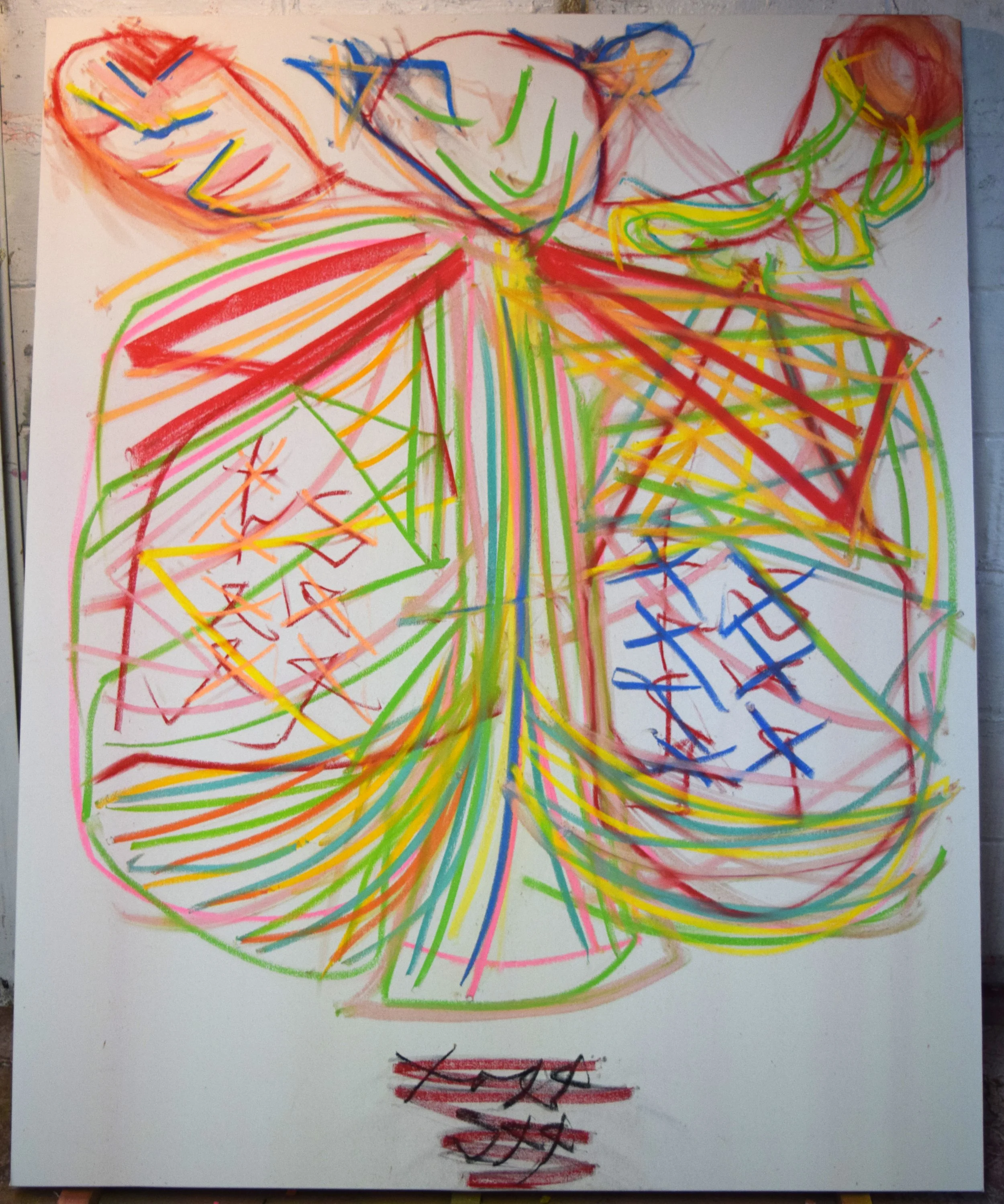 Beau 7, 2019. Oil, spray paint, chalk on canvas, 30 X 40 inches