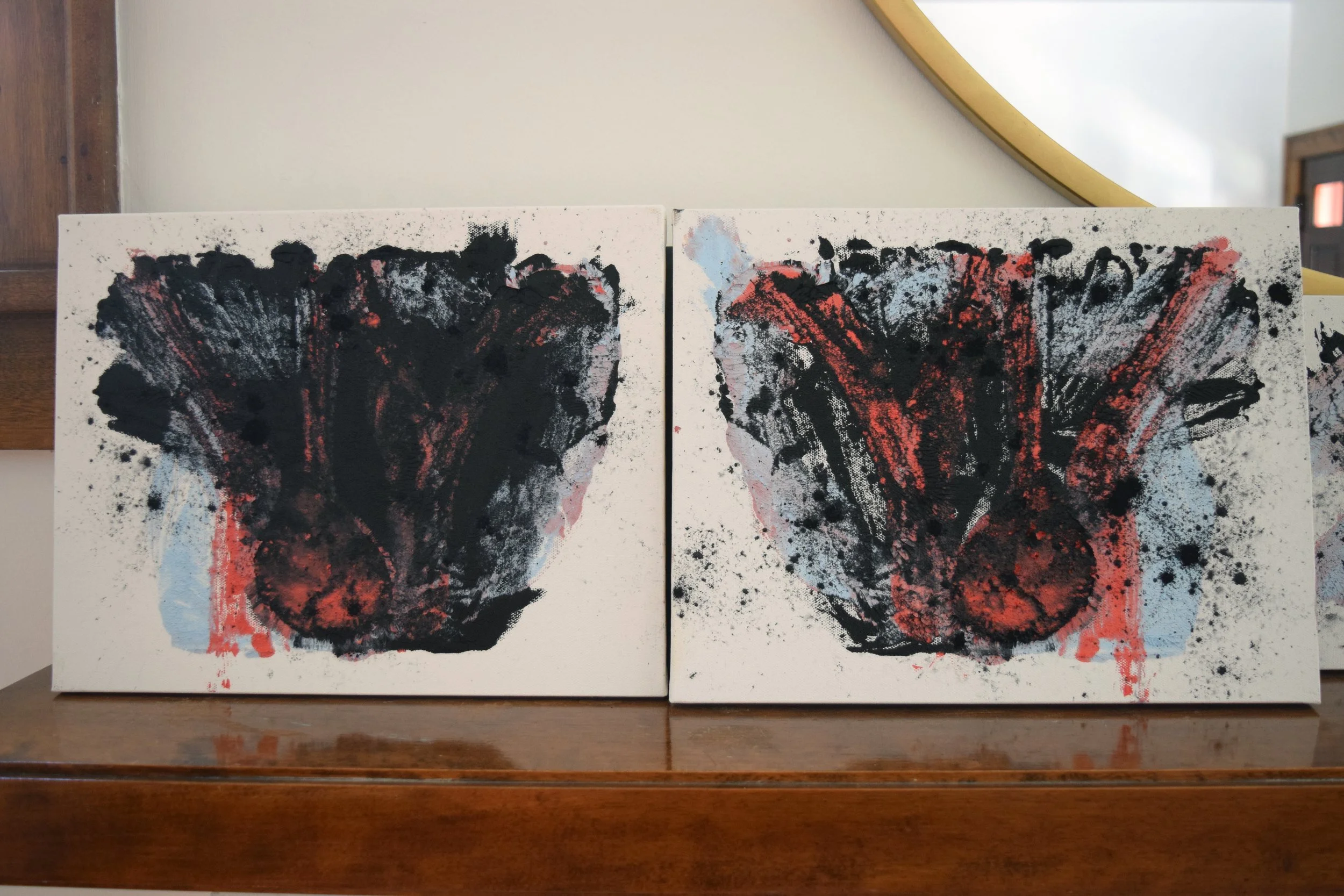 Diptych (Orpheus) (Astrocratis Acutispina) I, 2022. Acrylic and oil on cardboard, 30 X 62 inches