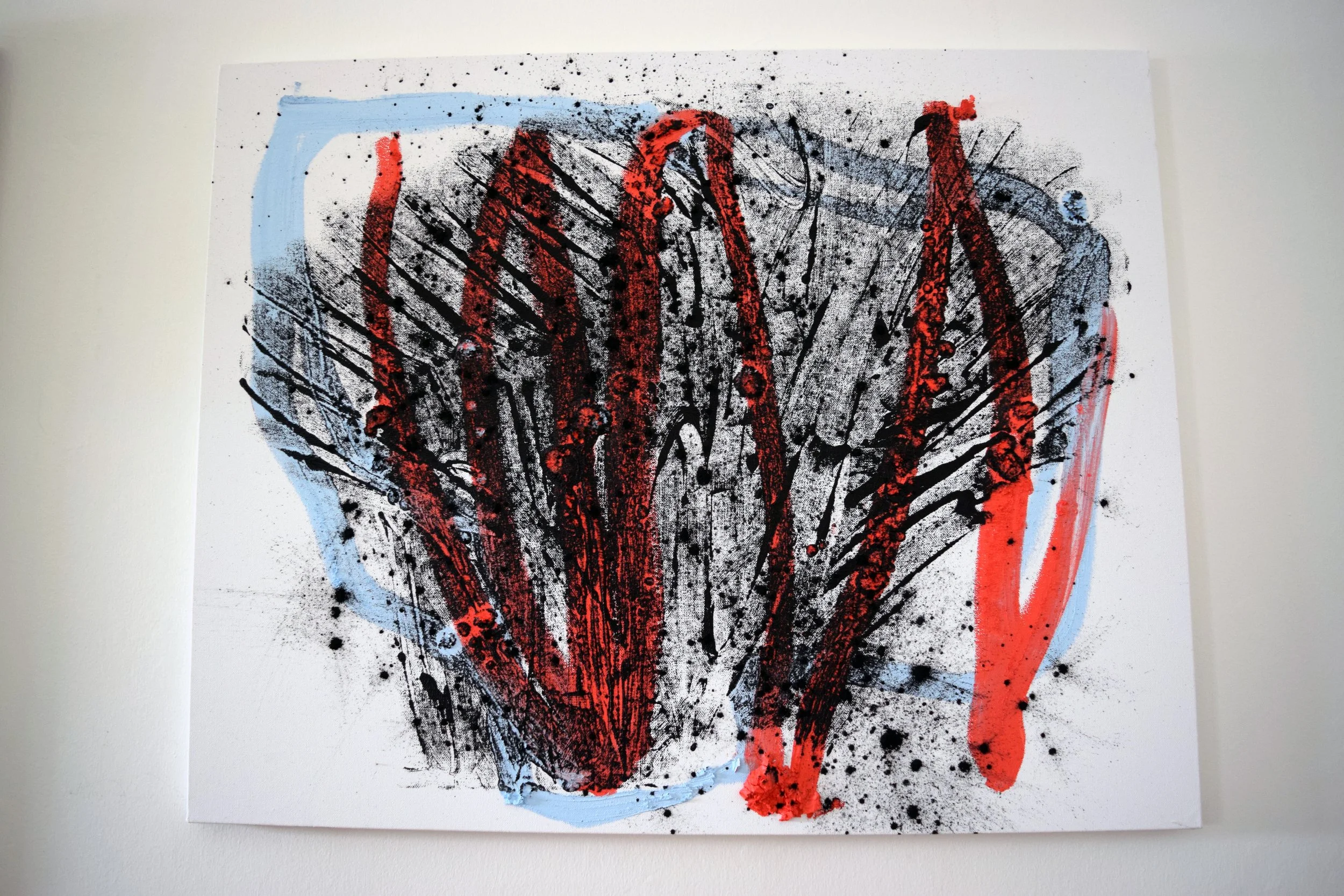 (S)HELLS, 2022. Watercolor and spray paint on paper, 85 X 71 inches