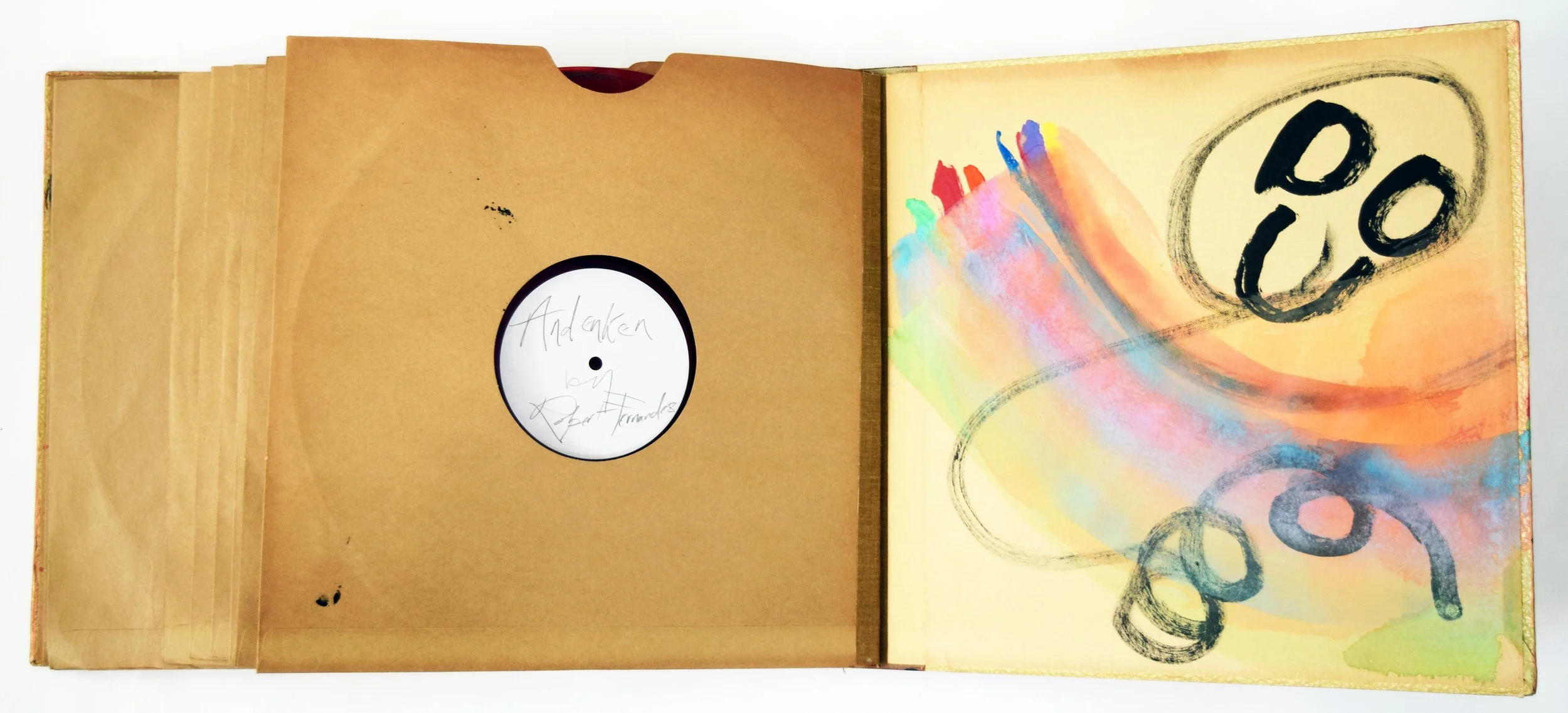 Below: Andenken, 2020. Watercolor, acrylic, powdered pigment, and vinyl records, 12.5 X 14 inches